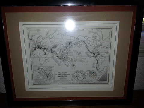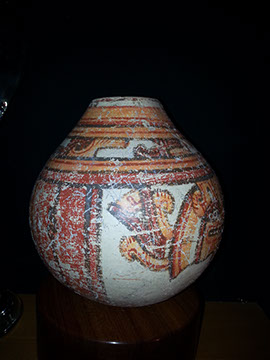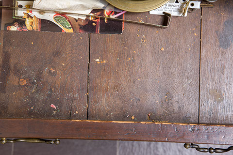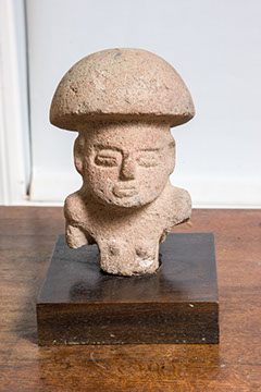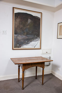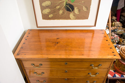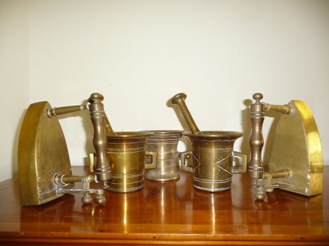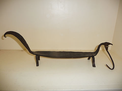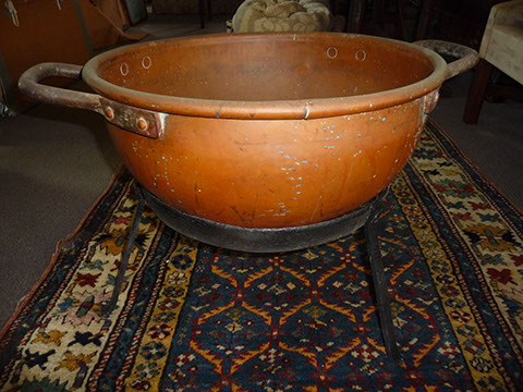 An exceptional early American burl wood bowl, diam. 17 ¾” x 6 ½”; Victoria Taxco sterling bracelet; Tiffany sterling silver straws in original box; Scrimshaw; authentic American wooden ship models; South African blanket; Delft tile framed mirror; tall clock signed ‘William Terry, Richmond’; American Pennsylvania grained and hand painted multi-color polychrome wooden document box, c. 1850; pair of American brass and iron andirons; wrought iron floor stand/hat rack; collection of antique heavy copper pots; vintage brass mortar and pestles; wooden candle box; set of Georg Jensen stainless steel “Plata“ flatware, 97 pieces; apple butter double handled copper cook pot with original stand; Chinese Rose Mandarin teapots in original baskets; branding irons from the McDowell ranch; Talavera “Uriarte” from Pueblo, Mexico; maps; baskets; authentic replica of the galleon “Elizabeth Jonas”, based on original plans of Matthew Baker, Master Shipwright of Queen Elizabeth I; Tiffany desk clock; Pre-Colombian stone sculpture from Guatemala “Mushroom Head”; antique and vintage Christmas decorations; Italian pottery; tabletop art books; American hand hooked rugs; spatterware; document boxes; Texas Quilt; brass chenets; trinket boxes, towlware, Barbersjop Globe