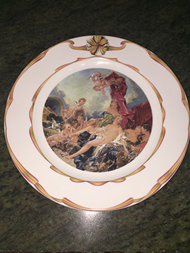Wedgwood “Kutani Crane” dinner service; Lenox dinner service; Cobalt “Adams” Jasperware; Meissen Figures, including figural quill holders, Oriental gents; Rose Mandarin lamps; Japanese Imari; Chinese Canton; Herend; Fitz and Floyd; Sur la Table dinnerware; Radko Christmas serving pieces; Limoges dinner service for 20, “Bluettes;” Set of twelve Limoges service plates hand painted in original boxes from the Hotel Carlton; English Staffordshire figures; Royal Worcester; Belleek.