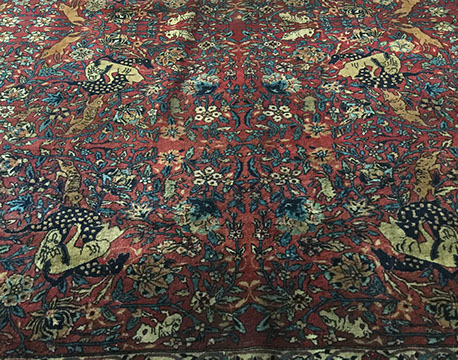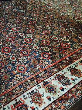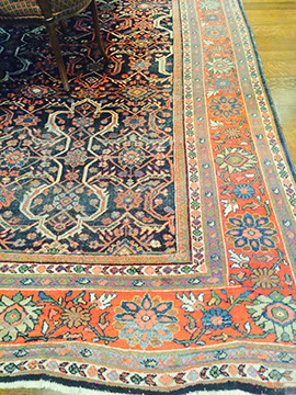 Room size and area handmade Oriental rugs: Mokhatassan Kashan, Gaazan Carpet, Inc. room size, mid 1800’s; Tabriz, circa 1900, Mahal, Sarouck, Peking Chinese, Yalamah, Karaman, Yazad, Hamadan, Lilihan, Persian Pak, Afghani, Turkish, and Joshaghan; Decorative area rugs