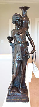 Original oil paintings, watercolors, pencil, pen and ink; signed sculptures in bronze; American, French and English signed and numbered prints, engravings and bookplates; Audubon's “Columbia Jay”, “Wild Turkey; Period Gould prints; Framed and unframed prints from Catlin’s portfolio of N.A. Indian Collection; J. Maurice signed, deaccessioned oil on canvas, entitled “Near Abergganty”; Painting attributed to Giovanni Paolo Pannini; Framed book plates: “Pyramids of Egypt”; Marble statuary, Lithograph by Felix de Weldon “The Iwo Jima War Memorial”; Artists included in this sale: Charles Umlauf sculpture entitled “The Runner” and original sketch studies for ‘The Runner’, Charles Pebworth, Robert Onderdonk, G.B. Tiepolo, Wayman Adams, Jonas Lie, Otis Huband, Dorothy Hood “Warrier”, Henry Ryland, Foley, Barbara Spencer, Edward Gay; J. Maurice, Angelbert Metoyer “Four Wings”; David Adickes; William Anzalone; Joy Laville; John Barthold Jongkind; David Hickman, J. McConn oil painting entitled “Jamail Brothers’ Produce”