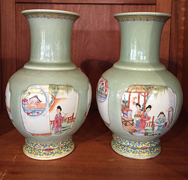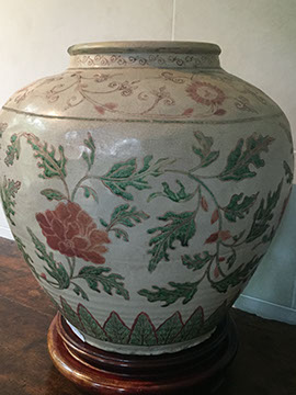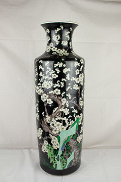 Chinese Famille Noire large vase, late Qing Dynasty; Pair of 19th century Japanese porcelain plates; Chinese green crackle-glazed vase, 19th century; Black-glazed vase, late Qing Dynasty; Chinese crackle-glazed jar; pair of 19th century Chinese blue and white circular dishes; Chinese blue and white jar from Wanli period; pair of Chinese iron-red decorated jars, 19th-20th century; pair of Chinese Famille Rose celadon-glazed vases, 19th century; Chinese yellow-ground mallet-form vase, 19th century; Chinese ‘Clair-de-Lune’ glazed vase, 19th century; Chinese yellow-glazed bottle vase, 18th-19th century, apocryphal Kangxi blue six-character mark; Royal Worcester hand painted china and serving pieces with English countryside scenes, c1810-1820; Herend “Queen Victoria” dinner service and serving pieces; Wedgwood “Alpine Pink” dinnerware; Royal Crown Derby “1128” and “Border”; Coalport; Antique Japanese Imari pieces; Staffordshire, Christian Dior dinner service; Lenox china; French faience; Boehm; Meissen; Dresden