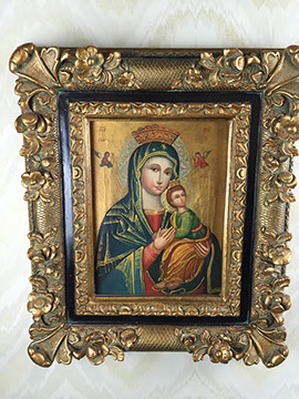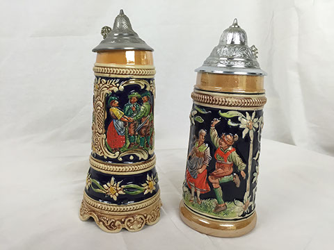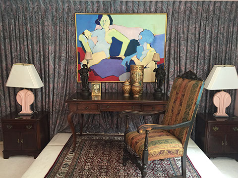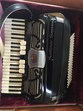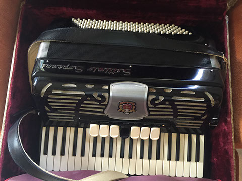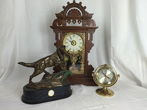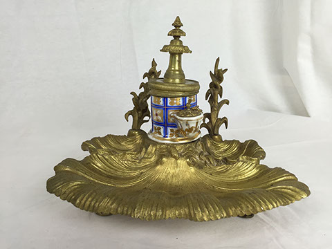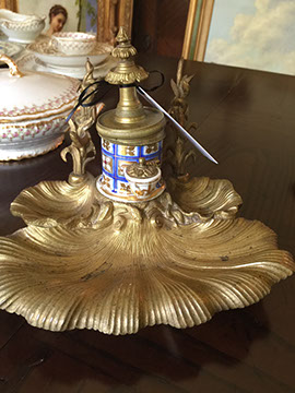 Clocks; French Ink well; Sterling silver trinket boxes by Tiffany; Accordion, “Settimio Soprani”; Stamp collection; Wall sconces; Oil lamps; Antique Turkish copper; Doll collection and doll clothes; Decanters; World War II blue wool