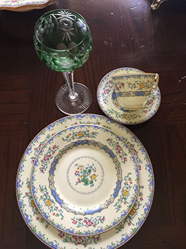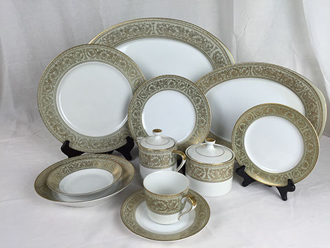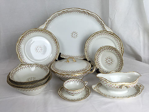 Coalport; Wedgwood; Fiesta; Limoges; Spode; Belleek; Royal Doulton; Mason “Imari” pattern; Gump’s; Noritake