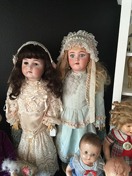 Antique German Bisque dolls, signed Simon and Halbig, “K Star R”; Heinrich Handwerck, Armand Marseille, Lenci; Original Shirley Temple doll; Madame Alexander dolls, including the “Little Genius”; Collection of Barbie dolls, including Barbies with mink coats made by Sakowitz Furs of Houston, Texas; Steiff stuffed bears and bunny; Vintage paper dolls from the 1930’s; Antique doll clothes