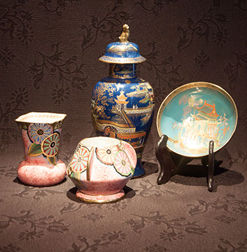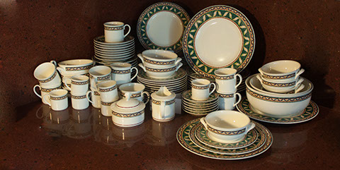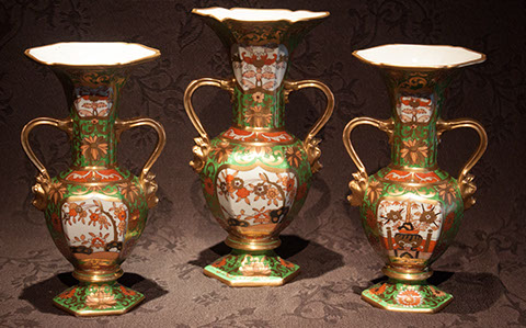 Royal Worcester inscribed Hadley; Meissen; Carlton ware; Sevres; Parian; Mason’s; Minton “Buckingham” service for 12 (111 pieces); Villeroy & Boch “Pergamon” service for 10; Noritake; Scarce Carlton Ware Pink Wagon Wheel Jar and Vase; Jacob Petit; Rosenthal; Flow Blue; Wedgwood; Royal Copenhagen; Dudson Brothers Mason ware Imari pattern; Lenox; Jasperware by Dudson; Limoges; dinner service Royal Albert Moss Rose.