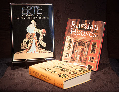 Outstanding reference library – antiques, jewelry, Russia Gardens. The Faberge Imperial Easter Egg, co-written by Lynette Proler, Christie’s (2000); Two Volume: The Art of the Jeweller - The Catalog of the Hull Grundy Gift to the British Museum, Vol. I Text, Vol. II Plates; Sculpture From Antique to the Present (New) (Box set 4); OT Mone Do Picasso-Russian; The Wirtz Gardens, Patrick Taylor, Vol.I & Vol II; Foreign Fashions and Suits old and modern, drawn and engraved by Pauquet Freres, Editors from the best Masters of each period and the most authentic documents. Delivery, Paris at the offices of Historical Fashions and Suits, First Edition 1865.