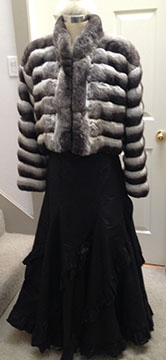 Fashion and Furs: Full length whiskey-color mink coat, female skins by Scaasi; silver fox jacket with black fox trim; wine-colored full length mink coat, female skins; Mahogany full-length coat; Chinchilla jacket.