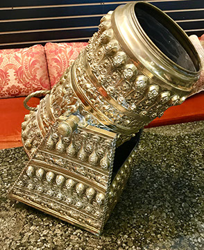 Walter Bannard “Jackburn Flood” (M. Knoelder & Co. Gallery), Chagall Print, Cezanne Etching, Two Limited Edition Geoff Winningham Portfolios, A Dozen Meissen China Service Plates, Raw Crystal and Dore Bronze Torchieres, French Dore Bronze Cherub Holding Art Glass Bowl, Bohemian Clear-Flash White & Blue Overlay Cut to Clear and Enameled Glass Ewer, Royal Dux Figurines, Early 18thCentury Delft Jug with Lid, French Enamel Place Card Holders, Acrylic Mantle Clock, French Boudoir Clock, French Singing Bird in Gilded Cage, French Bronze of Children Playing by Moreau Mathurin, Chapel Length Embroidered Tulle Veil with Scalloped Princess Edging, Collection of Hartmann Luggage, Collection of Italian Made Marley Hodgson Luggage, Acrylic Table with Glass Top made by Merritt-Emanuel Ltd. (very hard to find), Portable Prie Dieu, Ornate Handmade Shell Headboard Commissioned by Mrs. McMahon, Pair of Matching Fortuny Upholstered Chairs, Fortuny Upholstered Sofa, Looking Glasses, Baldwin Grand Piano, Chickering Grand Piano in an Ebony Case, Pair of Giacometti Inspired Mid-Century Modern Handmade Gold Plated Andirons, Matching Pair of Persian Andirons, Ceremonial Thai Headdress, Gayageum Asian String Instrument, Four Panel Chinese Screen with Inlaid Semi-Precious Stones, Chinese Chippendale Style Chinoiserie Cabinet, Chinese Chippendale Sideboard with Chinoiserie Décor, Pair of Water Colors of Chinese Emperor and Empress, Hand Carved Wooden Reindeer Studded with Semi-Precious Stones and with Glass Eyes, , 18thCentury Siamese Bronze Hindu God,Canon Style Brass Coal Scuttle, Faux Painted Corinthian Column, Fishing Rods & Large Sea Reel, Victorian Child Velocipede, Cast Iron and Pressed Steel Antique Toys, Antique Ventriloquist Dolls, Large Carved Wood Camel Planter with Liner, Large Collection of Limoges Trinket Boxes, Highly Collectible New Yorker Magazine Covers,