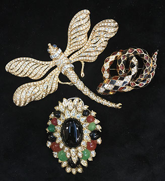 Women’s Fashion & Furs: Mink, Sable, Lynx, Fox; Large Ostrich Feather Fans; Collection of Signed Vintage Costume Jewelry- Kenneth Jay Lane, William de Lillo, Phillipe Ferradis of Paris, Ciner, Inna Cyitrine of Paris, Hattie Carnegie, Margo de Taxco, Trifari, Tiffany & Co., & Marqiquita Masterson; Designer Handbags: , Fine Jewelry, & Timepieces: Watches by Rolex, Cartier, and Tiffany; Collection of Antique Walking Sticks with Silver Handles, Collection of Hartmann Luggage, Collection of Italian Made Gurkha Marley Hodgson Luggage.