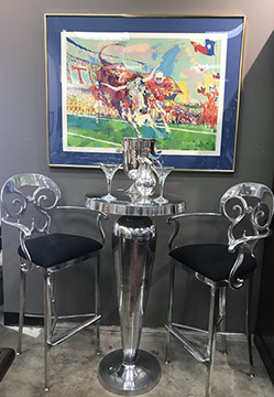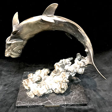 Walter Bannard “Jackburn Flood” (M. Knoelder & Co. Gallery), Works of Art by: David Williams, John Nieto, Kevin Red Star, Ralph Wall, Tom Moss, Kaposka, Jonathan Kenworthy, Al Barns (of Texas), Chagall Print, Cezanne Etching, Two Limited Edition Geoff Winningham Portfolios, African Dogon Sculpture, Pair of Indonesian Tribal Poles as Sconces, 18th Century Siamese Bronze Hindu God, Ebony Wood Hindu Sculpture from Maas in Bali, French Bronze of Children Playing by Moreau Mathurin, Pair of Water Colors of Chinese Emperor and Empress, “Texas Longhorns” by LeRoy Neiman,Bronze Wildlife Sculptures.