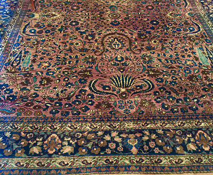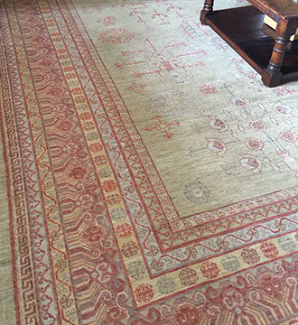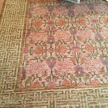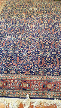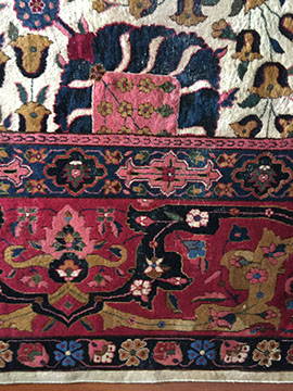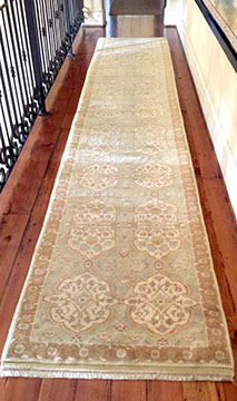 RUGS AND TEXTILES: Handmade room-size and occasional- size Oriental rugs, including a large 19th century Moghul style, Iranian Heriz, Chinese Aubussons, Sarouks, Serapi, Camel hair runner, Many contemporary Agras; Fine table and lap linens