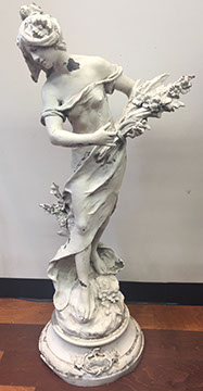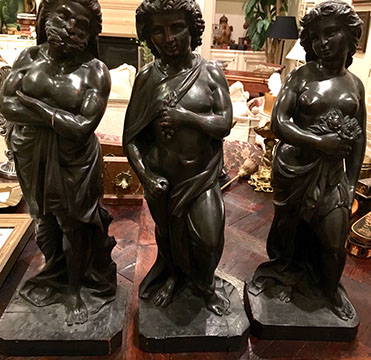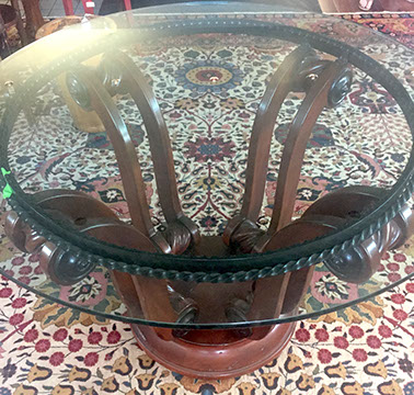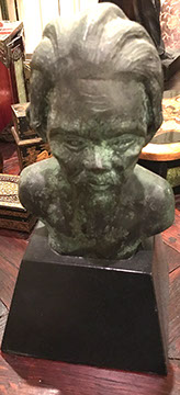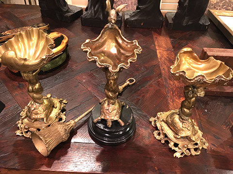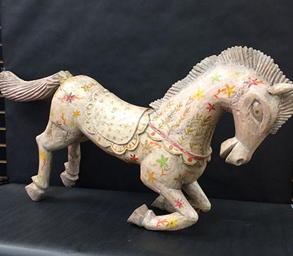 SPECIAL ATTRACTIONS: Several Chandeliers, of Swarovski crystal, stained glass, brass, Venetian glass, and wrought iron; Hand carved and painted Carousel Horse; Antique French copper cookware; Two Russian Samovars; Jan Barboglio barware and decorative housewares; Hand carved wooden Folk Art figures, including animals, Santa figures and ethnic masks from Africa and Indonesia; Antique cash register from National Cash Register #1354151; Baby Grand Piano by Harwood, ebony finish, excellent condition; Library from the estate of Dr. Denton and Mrs. Cooley, many signed and dedicated; Library of leather-bound books from the estate of Mary Ellen Holley; An extensive collection of Yard and Garden Art including Whimsical Bird Houses deaccessioned from The Biltmore, stone and wrought iron statuary, wrought iron furniture, Charleston Battery benches, fountains, decorative orbs; Artist made quilts; a Pair of 19th century French interior doors, 9.5 ft.; a Pair of Art Deco Alabaster urn lamps; Chinese carved panels; Matching pair of marble plinths; Impressive pair of brass altar candlesticks; Many decorative pillows; Matching pair of signed Herend Foo Dogs; Stainless steel flatware, artist signed, by Georg Jensen; Collection of signed antique brass figures and inkwells; a Pair of antique wrought iron jail doors from Mexico made into chest; a Collection of handmade Nativities, including a seven piece Anri set; Collection of Christmas décor from Round top, handmade Santas; MacKenzie-Childs decorative accessories; Collection of Native American sterling silver jewelry, concho belts and purses; Chinese Rose Mandarin Lamps; Very rare teak and forged iron doors from the 1860s; Selection of Tole items- trays, lamps, urns; English tall clock; Collection of Santos and Retablos. Life size wooden cookie molds from Northern Europe. Many pieces of Louis Vuitton hard case luggage,