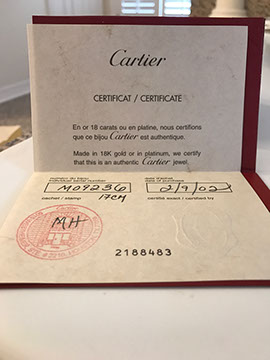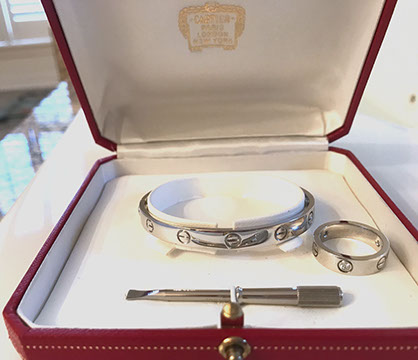 FINE JEWELRY AND TIMEPIECES: Tiffany 18k yellow gold necklace, Cartier “Love” bracelet and matching ring
