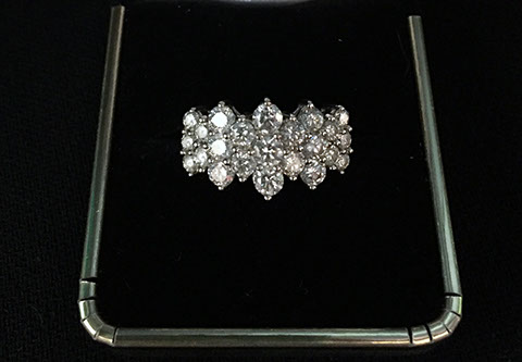 Tiffany & Co. platinum & diamond Solitaire ring, square mixed cut diamond marked “c1999 TIFFANY & CO., approximately 5.10 carats (Not on premises, by appointment only), GIA certified w/ original papers; Fine gold & diamond jewelry; Fine Ladies & Gents time pieces: Rolex and Cartier watches; Native American jewelry; Important artisan beaded jewelry of coral, turquoise and sterling, lapis and carved jade; Iradj Moini brooch