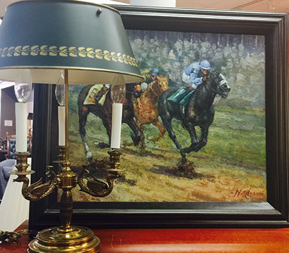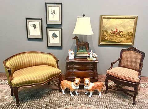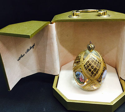 Original American & European Oil Paintings; Period American & English Furniture curated by Barry Greenlaw, Appraiser, Texas; Tiffany & Co. Platinum & diamond solitaire ring, square mixed cut diamond marked “c. 1999 TIFFANY & CO., approximately 5.10 carats (Not on premises, by appointment only), GIA certified w/ original papers;  Superb collection of Judith Lieber Minaudieres; Pre-Colombian artifacts; Verre eglomise dressing table; Collection of papier mache boxes; Tole ware; Document Boxes; Miniature children’s upholstered settee, and chair and chest; Collection of Vintage German Turkey candy boxes; Wrought Iron Gazebo (15’x11’); Handmade Oriental Rugs; Pair of Royal Copenhagen artist-signed lamps; Theorem painting, American c. 1840, painted scene on velvet; Collection of Staffordshire portrait figures from the Victorian Era; Map of North America “North America with the West Indies”; Vintage hand-blown, non-lead crystal Crachoirs; Diminutive children’s furniture; Country French carved, cane seat chair; Set of 8 antique French painted, caned chairs; Antique lorgnette glasses; Pink Venetian glass chandelier; Limited Ed. Theo Faberge Egg, crystal with enameled painting in gold gilt panels; Antique French cabinet with marble top; Antique Flax Wheel; Antique decorative pillows; Antique needlepoint tapestry; Snuff bottles; Wedding handkerchiefs; Beaded Indian Tapestry; Native American jewelry; Dolls; Collection of Mme. Alexander dolls, French Santons; English library; Radko Christmas ornaments; Russian Santa’s; Jay Strongwater boxes; American Artist pottery; Collection of canes and holder; English bamboo furniture; Garden furniture