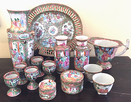 Limoges Haviland, Wedgwood & Royal Worcester dinnerware; Versace vase; Royal Worcester figurines; Sevres; Royal Cauldon “King’s Plate”; Tirschenreuth; Majolica; Staffordshire portrait figures from the Victorian period; Dresden; Wedgwood Jasperware; Royal Copenhagen figurines & dinner service; Villeroy & Boch; Collection of Rose Medallion; Delft; Mottahedeh; Herend; Imari; Collection of Quimper; Lladro; Boehm; Royal Worcester “Dorothy Doughty “ Carolina Perroquets; English Transferware; Limoges Haviland “Silver Anniversary”; Coimbra; Delft 4pc canister set; Capodimonte; “Old Paris”, Meissen; Minton