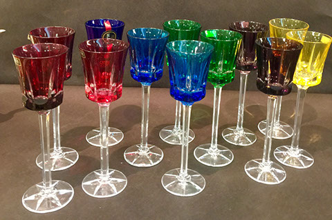 Lalique, Daum Nancy, Baccarat stemware, Waterford, Sevres, St. Louis single branch candlesticks, Murano, Steuben, ABC, Collection of Tiffen “Palais Versailles”, Sabino, Gorham, Tiffany & Co.; Art glass; Vintage hand-blown, non-lead crystal crachoirs